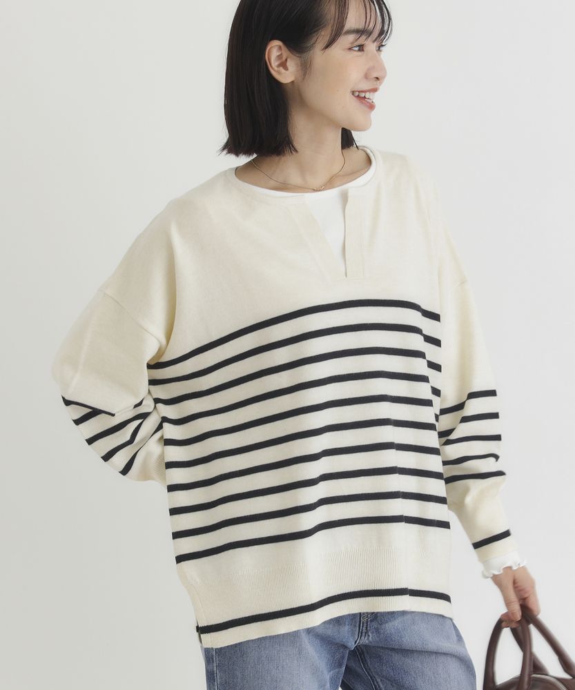シンプルでありながら洗練された印象を与えるスキッパーセーター。