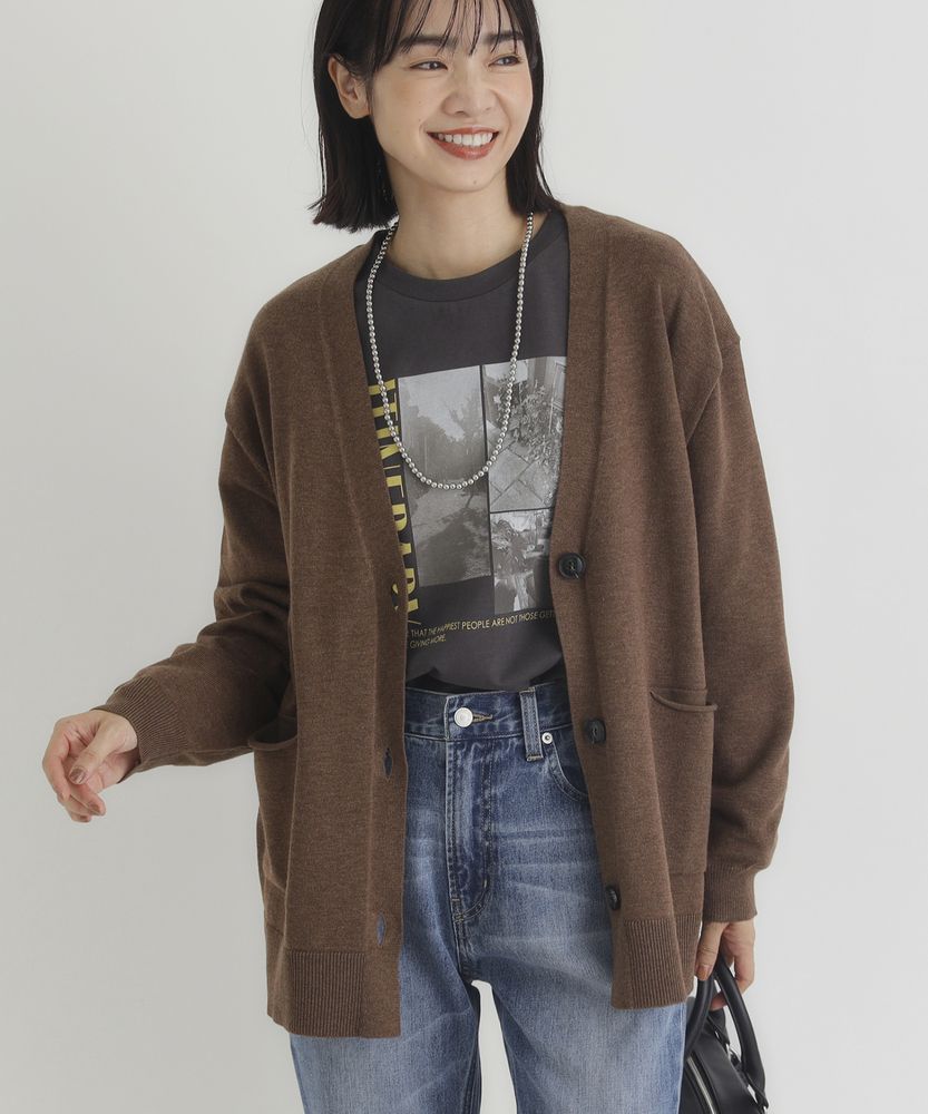 シンプルで洗練されたVネックニットカーディガンは、リラックス感のあるシルエットが特徴です。