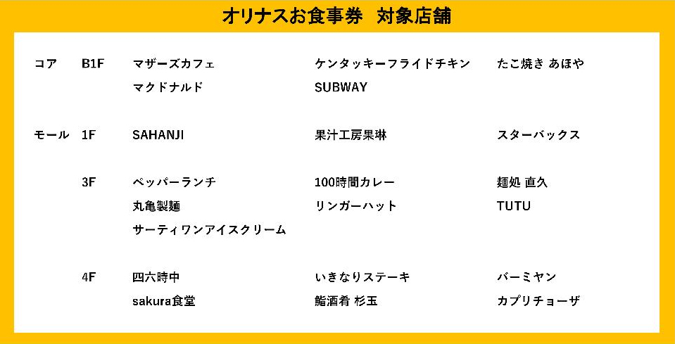 olinasお買い物券・お食事券 ご利用店舗のご案内