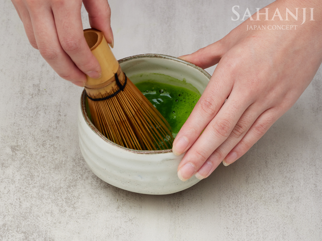 静岡県産「天空の抹茶R」を使用して、お客様の目の前で一杯ずつお茶をたてる「魅せる」スタイルがにこだわっています。