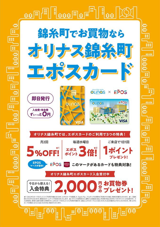 2,000円分のオリナス錦糸町エポスカード入会特典券をプレゼント!